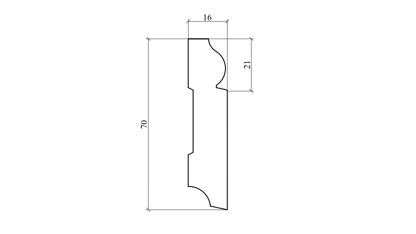 - С внешней стороны молдинг кажется прямым, но имеет округлую выпуклость в верхней части. Этот элемент добавляет пространству изюминки, делает его особенным. Высота изделия - 7 сантиметров при толщине 1,6 см.